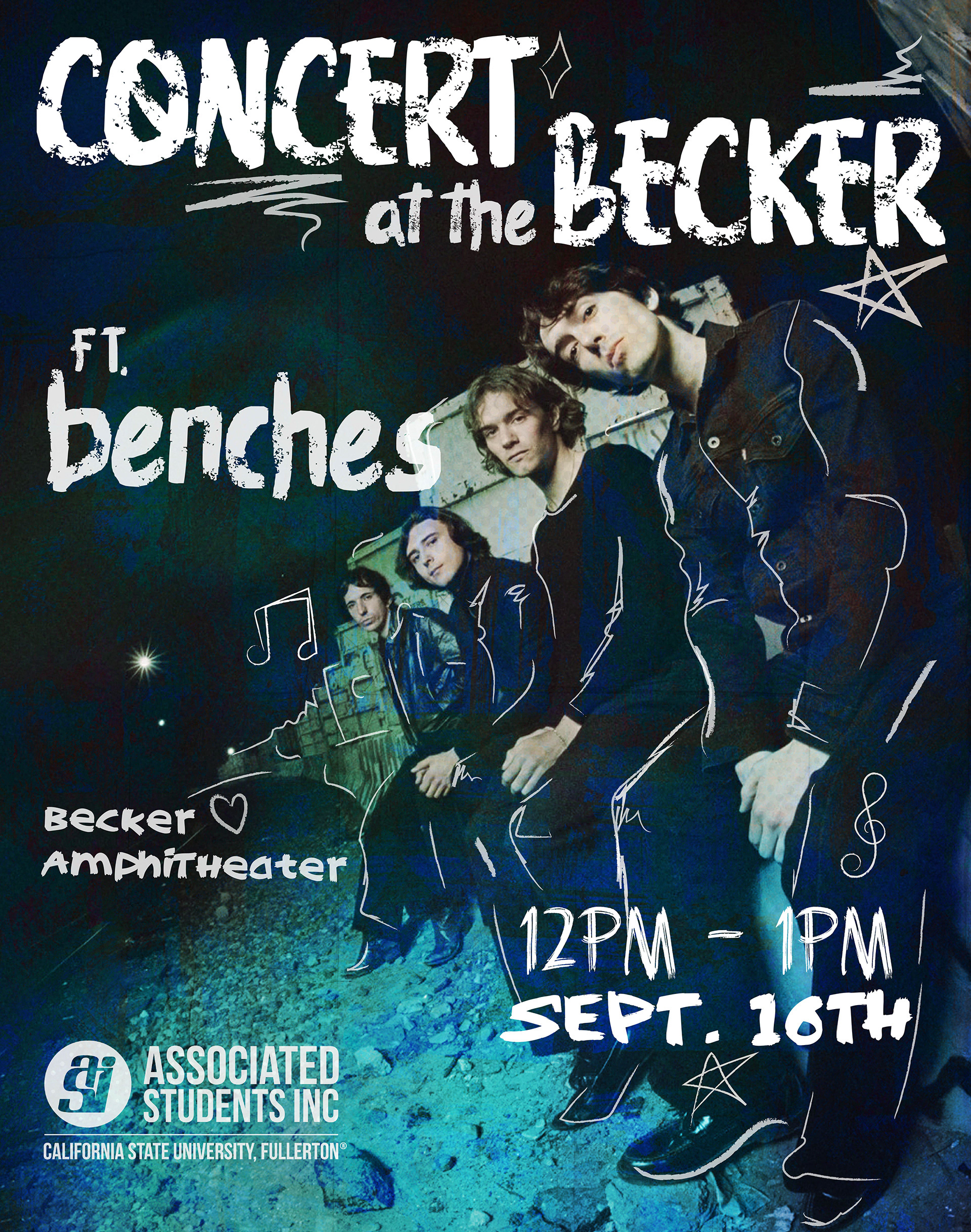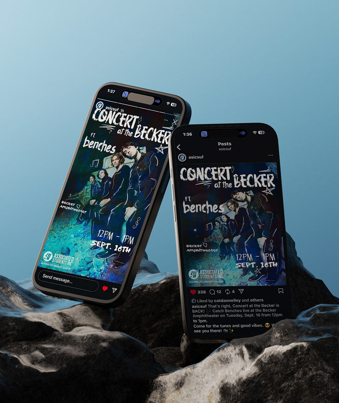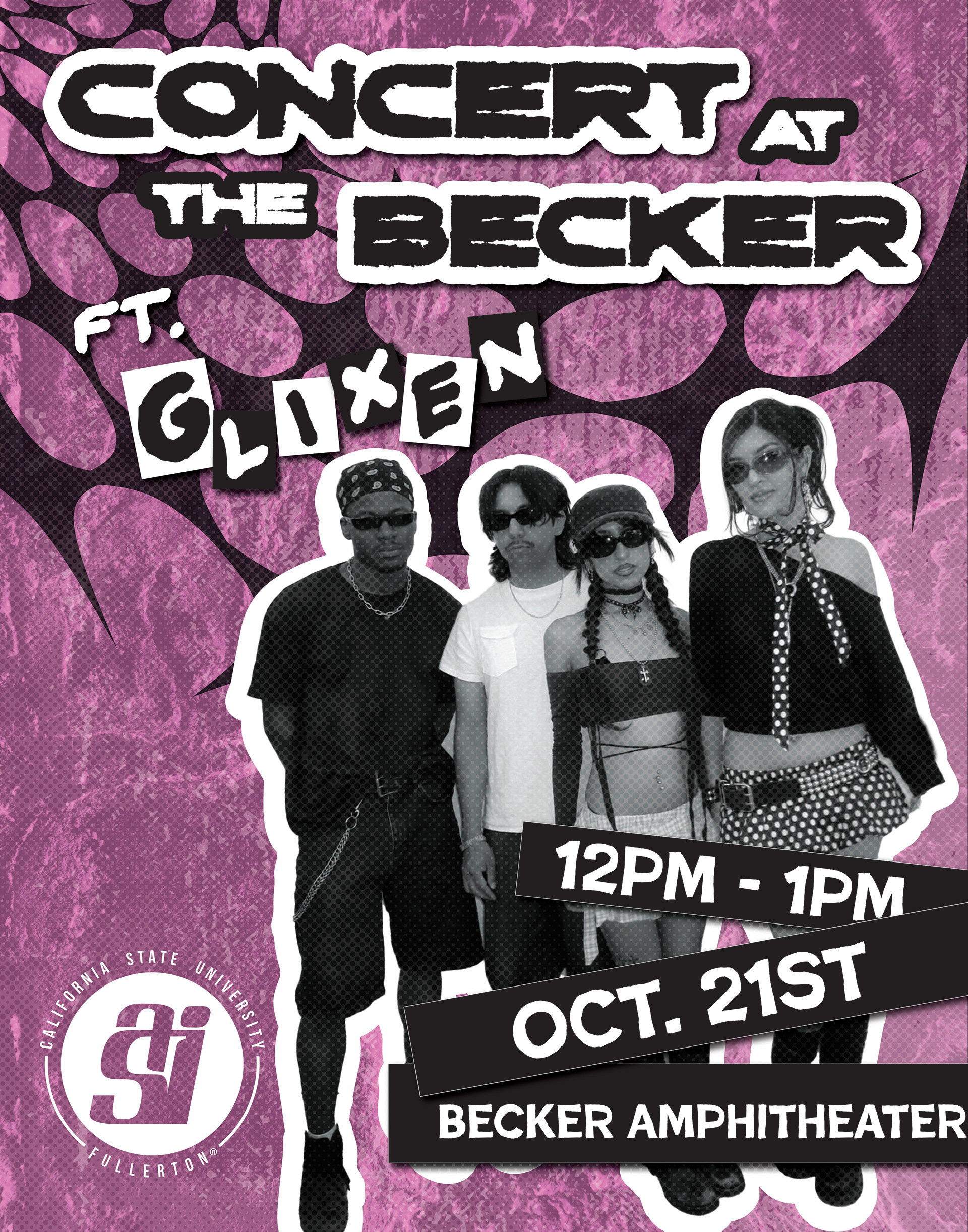 Designed display posters, handbills, flyers, social media posts, and stickers for two of CSUF's "Concert at the Becker" events.